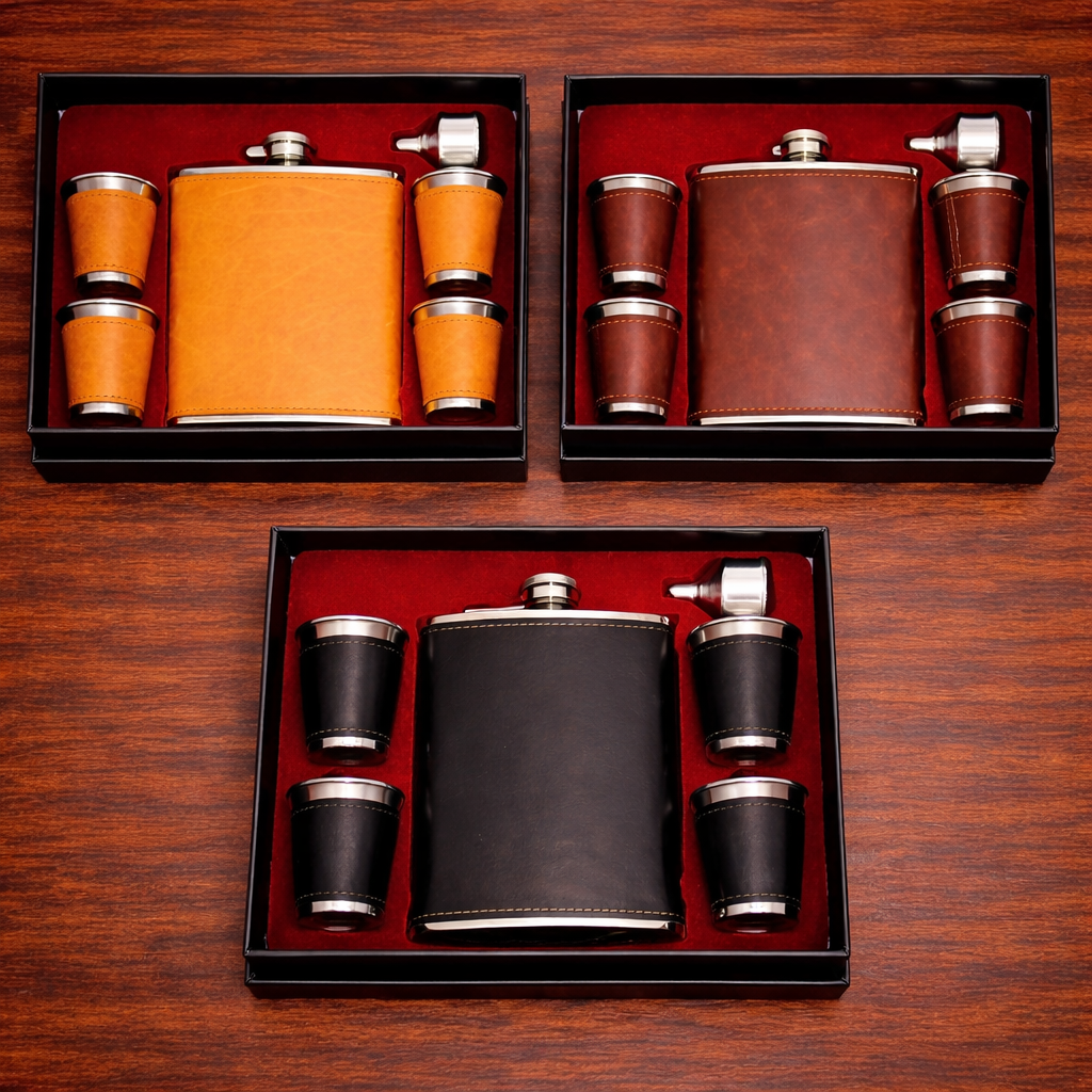 π₯ Leather-Covered Flask & Shot Glass Set β Premium Gift Box