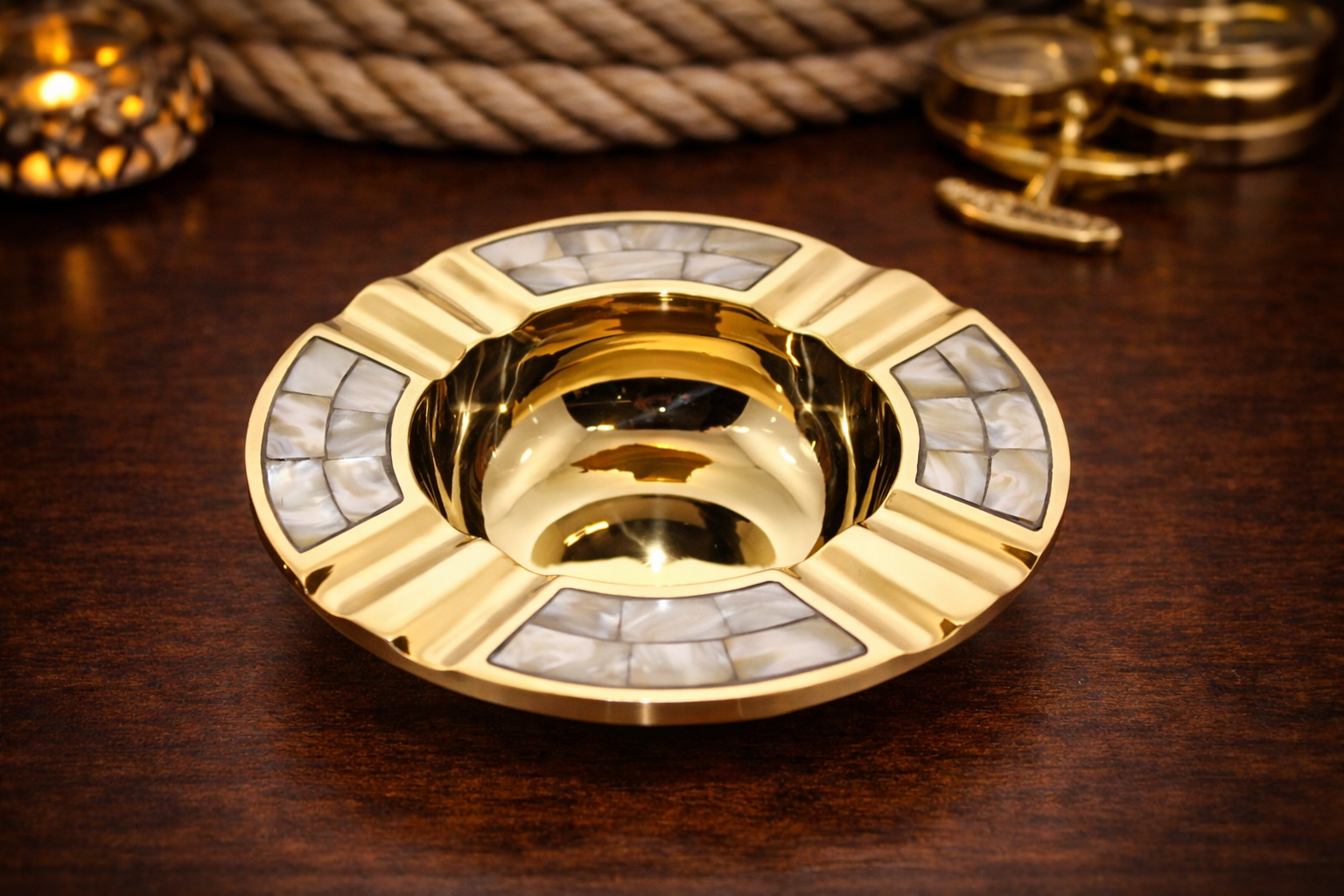 Sedef detaylı pirinç küllük ile mekânınıza zarafet ve karakter katın.